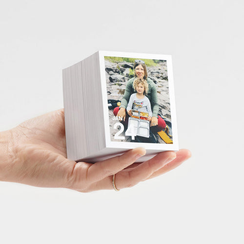 Make a gift with meaning—365 professionally printed photos bound in a neat block calendar. With custom photo cover and date personalization.