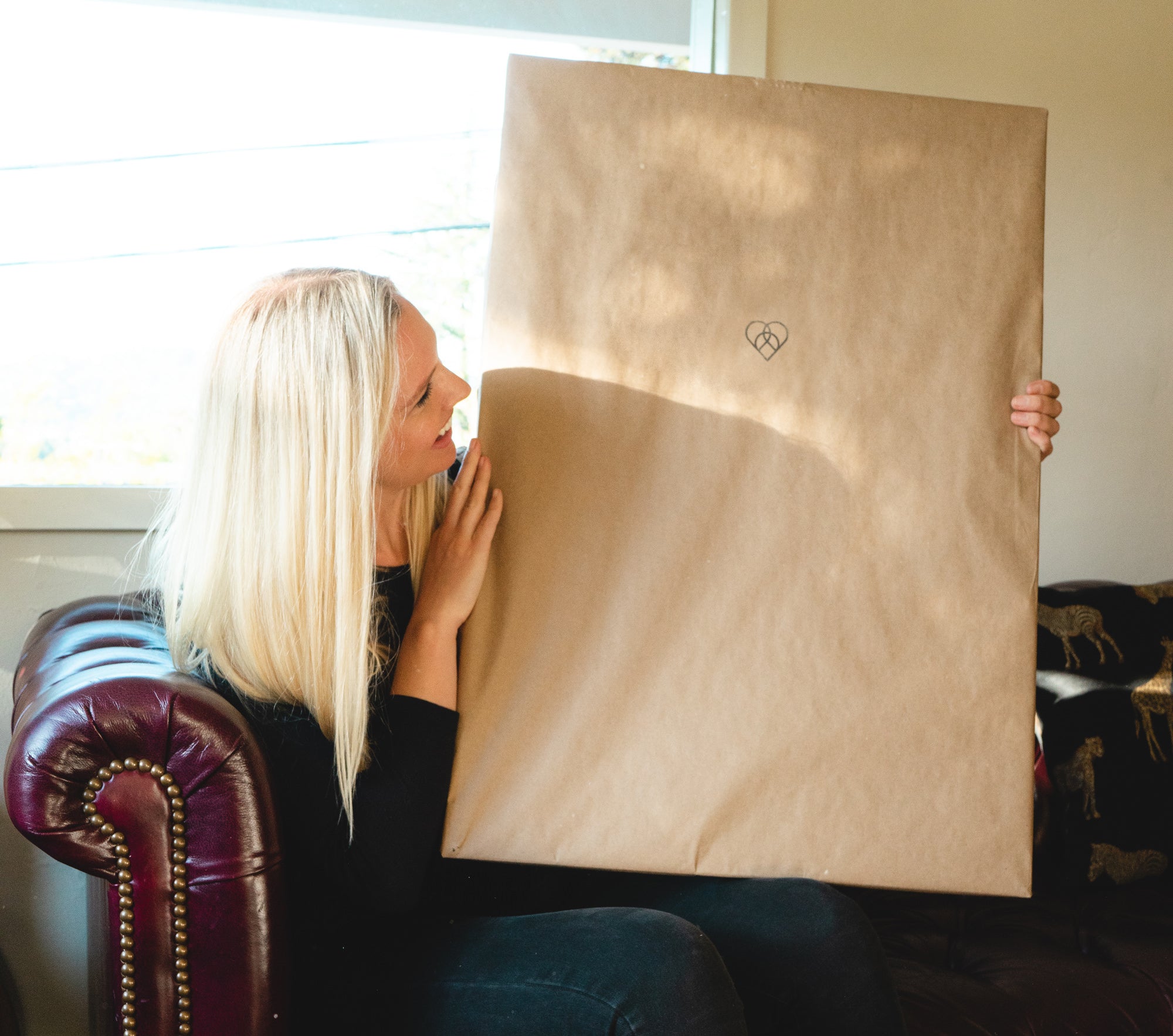 Framed posters are wrapped in brown kraft paper ready for you to add your embellishments and gift.