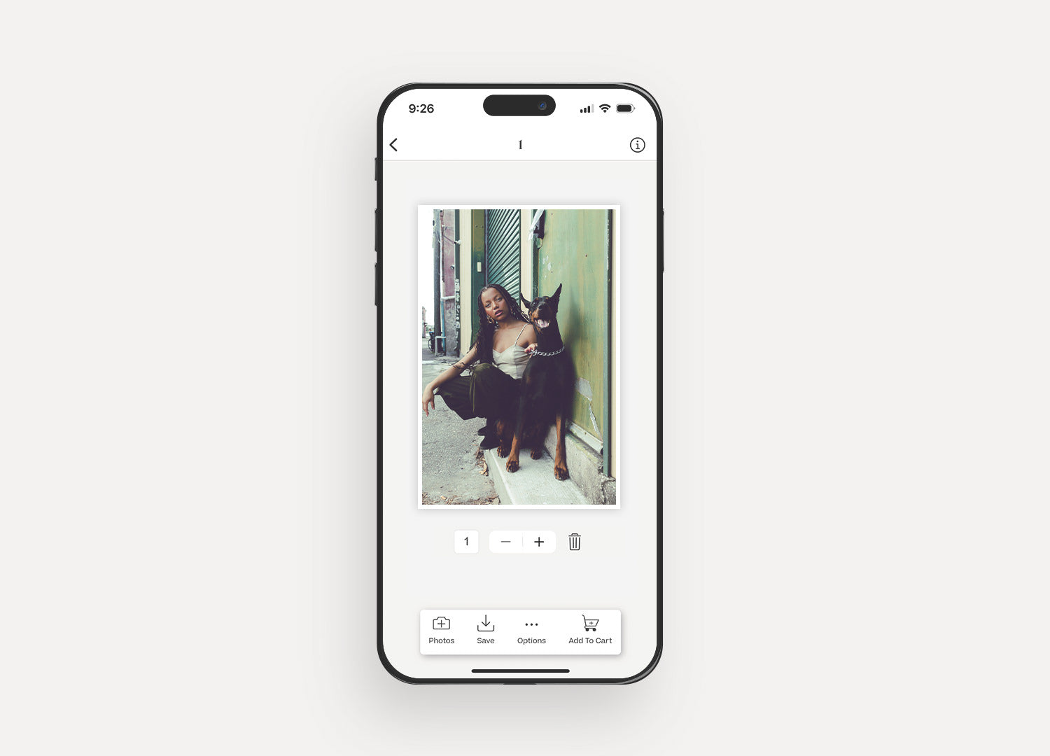 Print like the professionals! Choose from 20 sizes in photographer–friendly dimensions. Choose between full–bleed or bordered prints. Printed on premium Kodak photo paper.