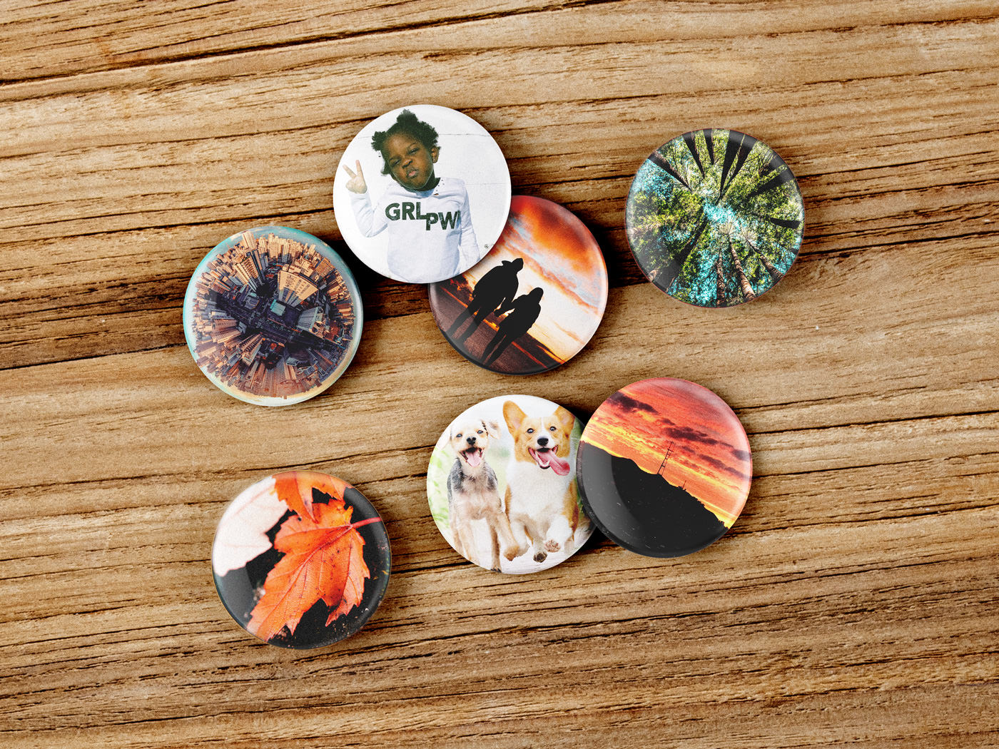 Fill that button-shaped hole in your life with our custom printed Photo Pins. With 15 pins per set, the dream of the 90s is alive in buttons! Perfect for campaigns, dog collars, denim vests, and backpacks.