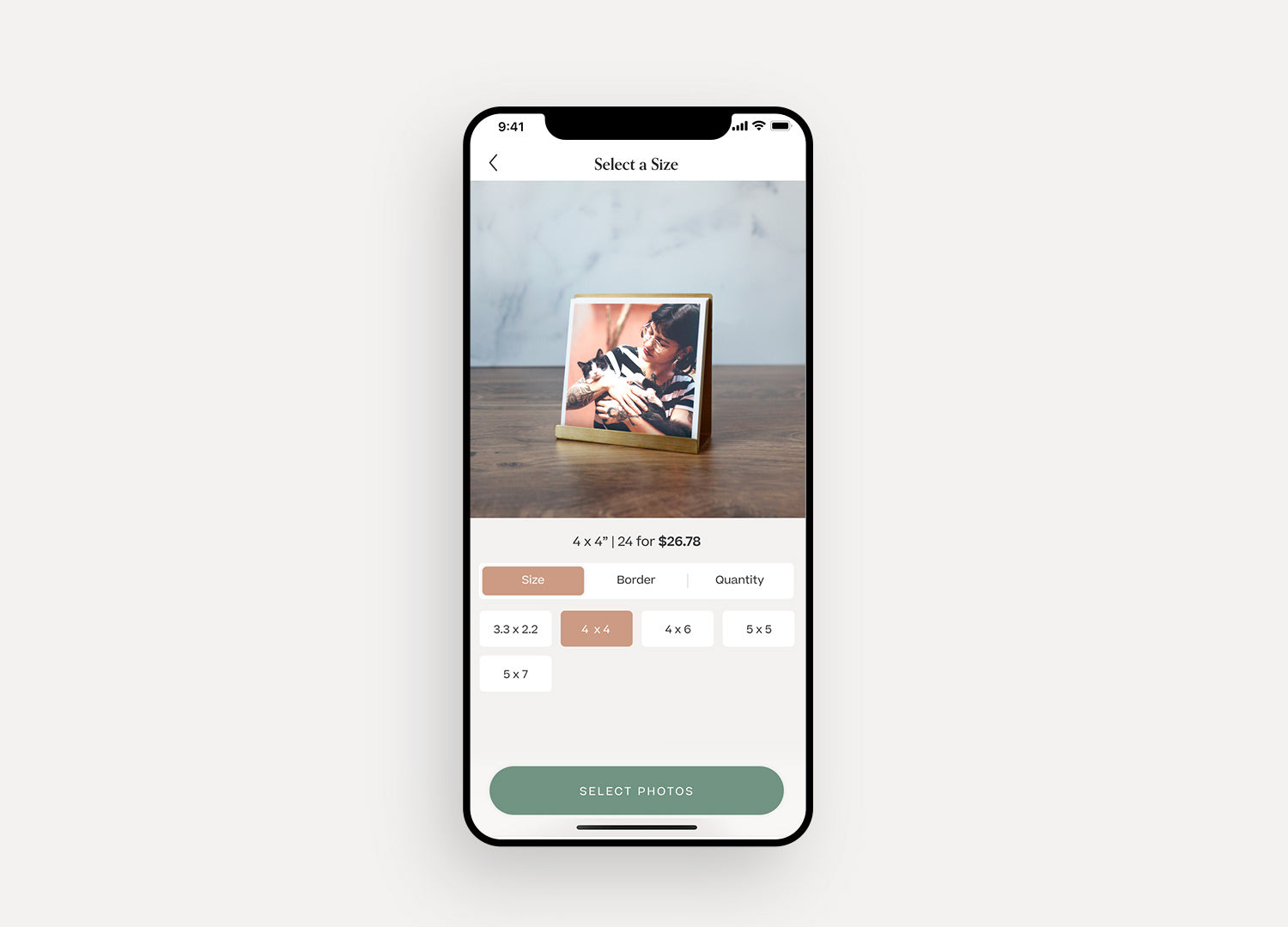 Download the Print Studio iOS app, and create a print set complete with Brass Stand right from your phone.